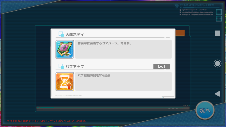 コアパーツは「コアパーツ強化素材」を使用し強化する。